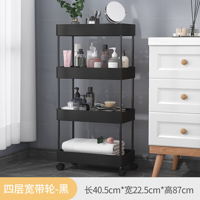 包邮 葛诺卫生间浴室置物架免孔厕所置物架收纳卫生用品大全收纳置物架 【黑色四层宽款+万向轮】售价32.