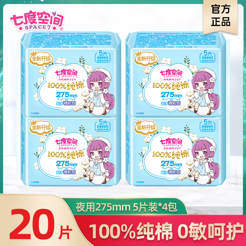 包邮 七度空间卫生巾少女系列加长日用275mm纯棉薄透气姨妈巾学生卫生用品 纯棉2 ' 275mm 0片